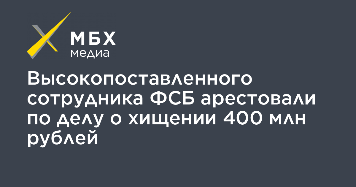 Высокопоставленного сотрудника ФСБ арестовали по делу о хищении 400 млн рублей