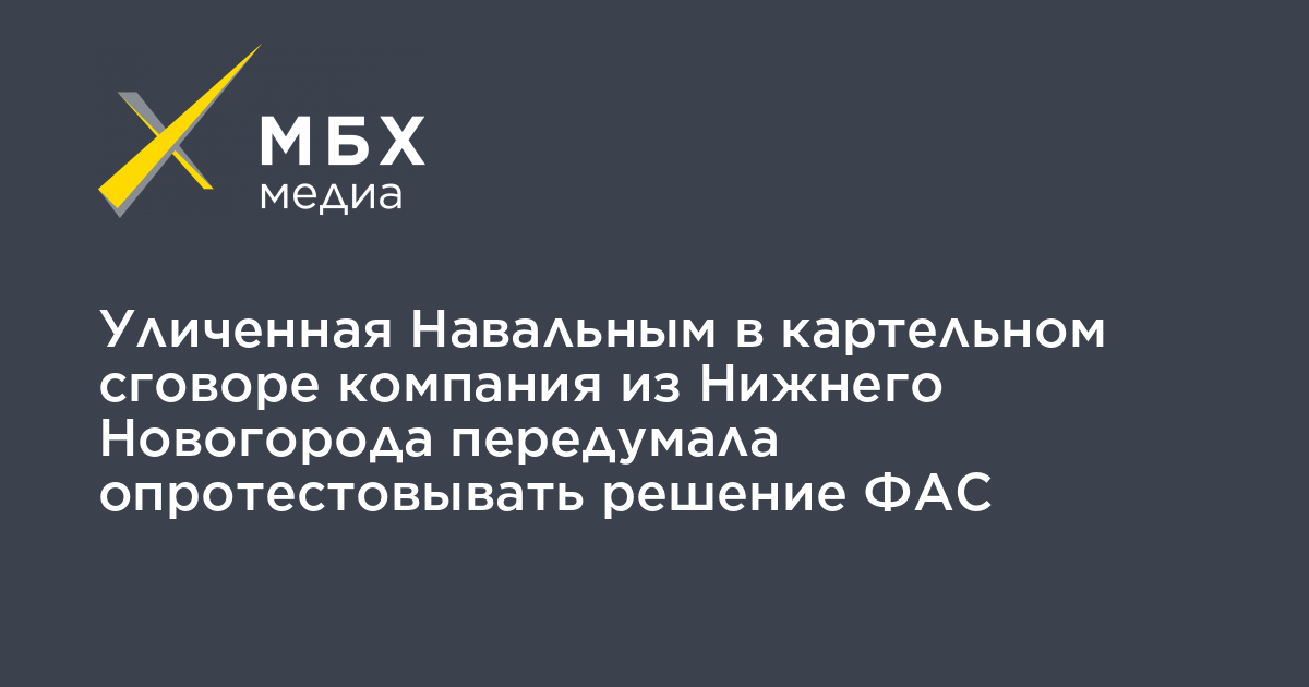 Уличенная Навальным в картельном сговоре компания из Нижнего Новогорода передумала опротестовывать решение ФАС