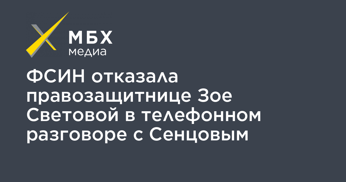 Администрация колонии ИК-8 в Лабытнанги отказала правозащитнице Зое Световой в телефонном разговоре с осужденным в России украинским режиссером Олегом Сенцовым. Об этом она сообщила «МБХ медиа».