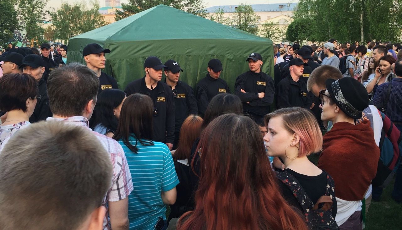 Утром 13 мая сквер огородили забором, чтобы начать работы. После того как фотографии ограждений разошлись по социальным сетям, противники строительства начали собираться в сквере на стихийную акцию: примерно к семи часам вечера (17:00 мск) туда пришли несколько сотен человек, позже их число увеличилось до нескольких тысяч. Собравшимся удалось повалить забор и попасть на территорию сквера, также они начали устанавливать палатку, чтобы остаться на дежурство на ночь. Несколько активистов пытались перекрыть дорогу, но им не дала этого сделать полиция.