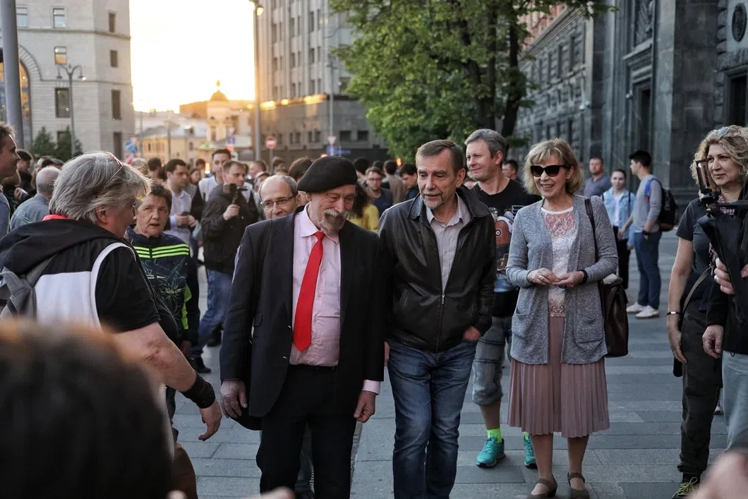 «Полиция с народом!»& — воскликнул Лев Пономарев под аплодисменты участником мероприятия после их задержания.