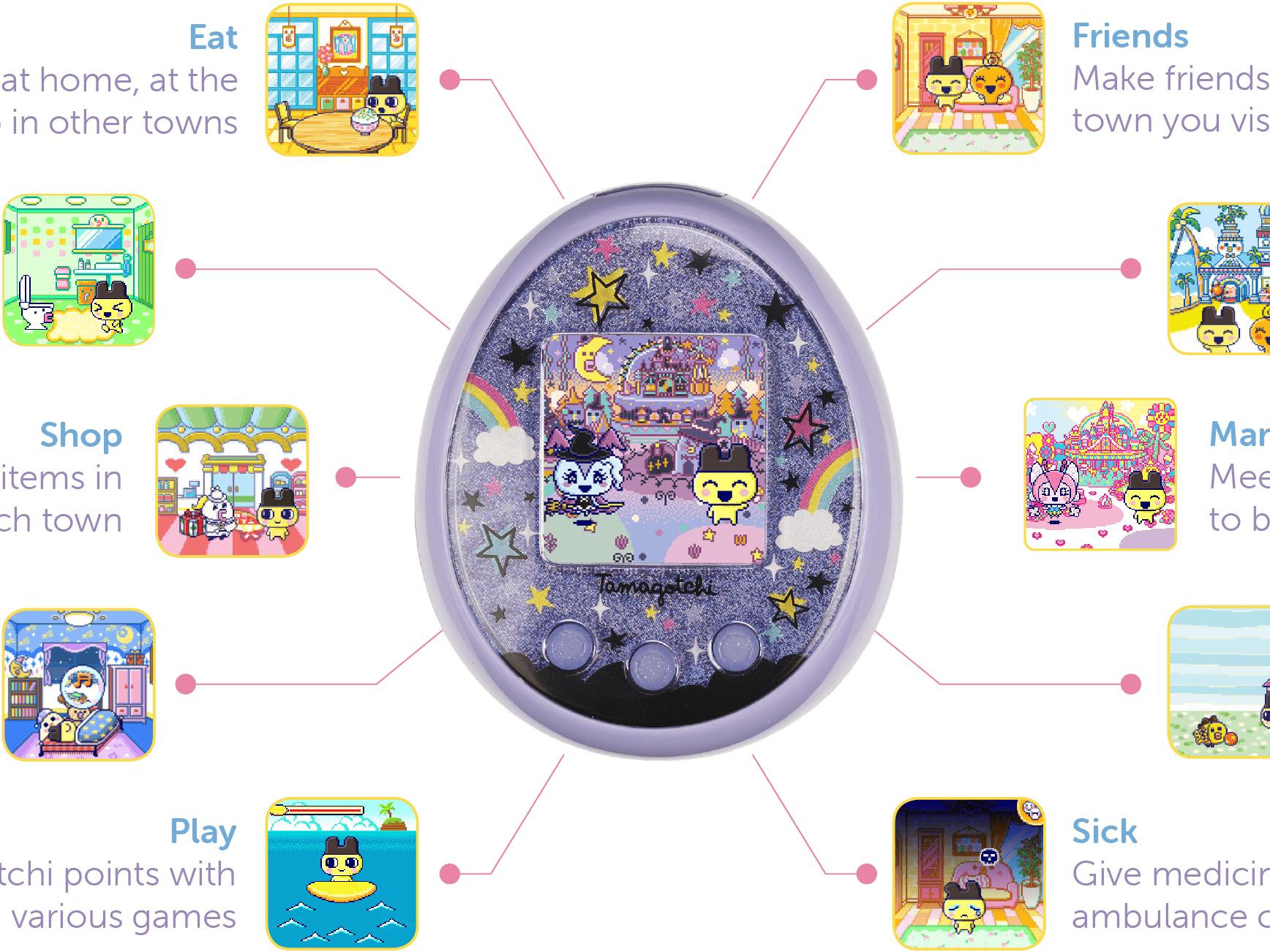 Тамагочи нового поколения внешне напоминает своего «предка», имея небольшие размеры и форму яйца, а также три кнопки для управления. Однако вместо прежнего черно-белого экрана у нее появится цветной LCD-дисплей диагональю 2,25 дюйма.