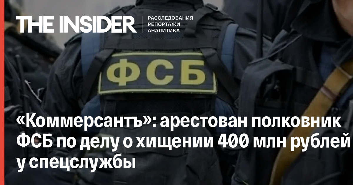 «Коммерсантъ»: арестован полковник ФСБ по делу о хищении 400 млн рублей у спецслужбы