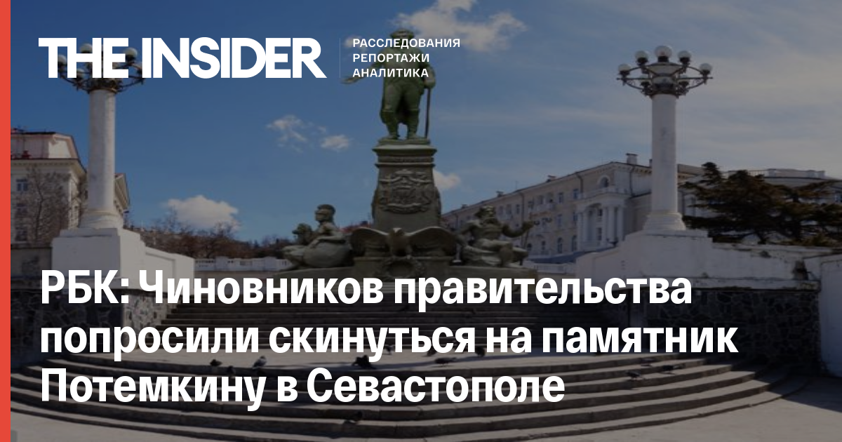 РБК: Чиновников правительства попросили скинуться на памятник Потемкину в Севастополе