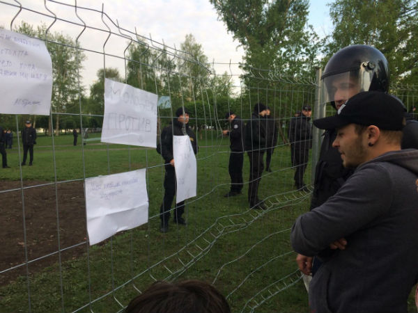 Накануне в протестной акции участвовали до двух тысяч человек. Они снесли забор и заняли сквер. На протестующих напали титушки, были пострадавшие. Как минимум четверо участников протестной акции были задержаны.
