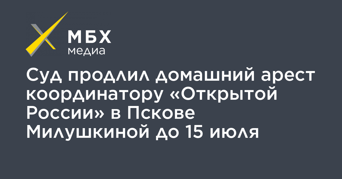 Суд продлил домашний арест бывшему координатору ликвидированного движения «Открытая Россия» в Пскове Лии Милушкиной, которую обвиняют в сбыте наркотиков, до 15 июля, передает корреспондент «МБХ медиа» из зала суда.
