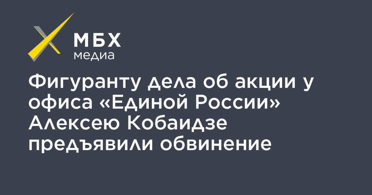 Фигуранту дела о брошенной шашке в офис «Единой России» в Ховрино Алексею Кобаидзе предъявили обвинение в хулиганстве, совершенном группой лиц по предварительному сговору (ч. 2 ст. 213 УК). Об этом «МБХ медиа» правозащитник Максим Пашков.