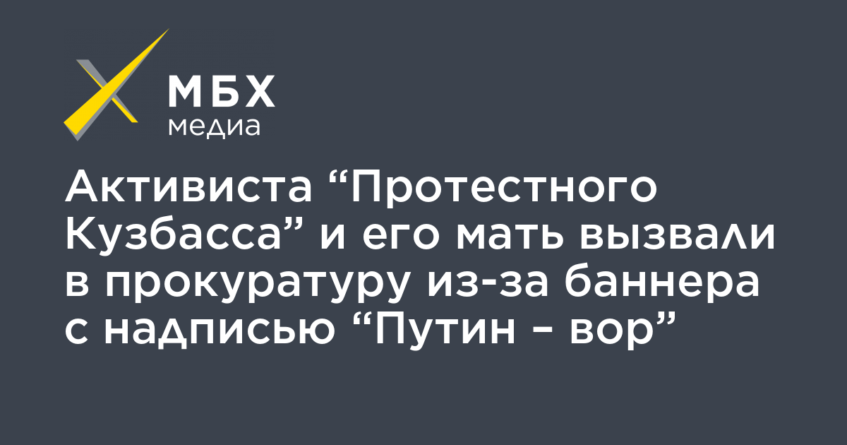 Активиста «Протестного Кузбасса» и его мать вызвали в прокуратуру из-за баннера с надписью «Путин – вор»
