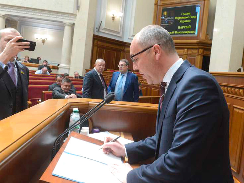 Спикер Верховной рады Андрей Парубий прямо в зале парламента подписал закон "Об обеспечении функционирования украинского языка как государственного".