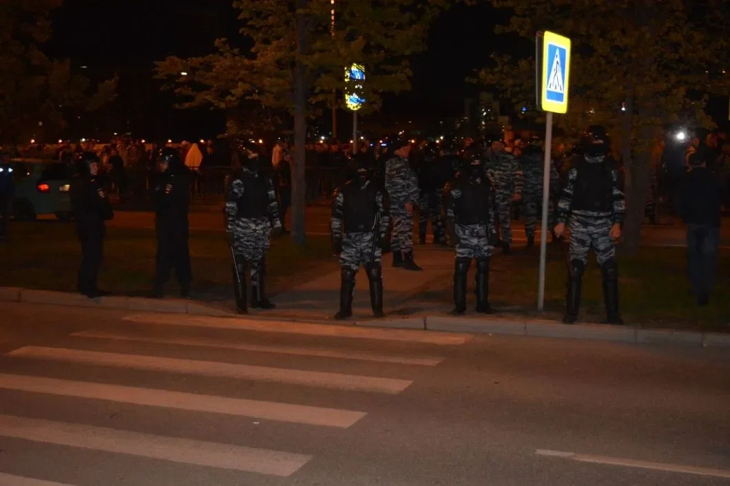 Вскоре протестующие перекрыли улицу Бориса Ельцина и ходят туда-сюда по нерегулируемому пешеходному переходу. Из трех тысяч человек, которые пришли на акцию вечером, осталось около 200.