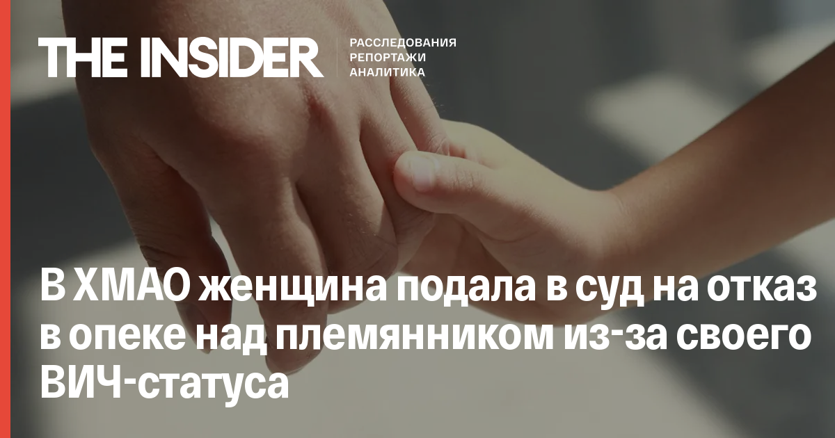 В ХМАО в суд обратилась ВИЧ-положительная женщина, которой органы опеки из-за ее диагноза отказали в установлении опеки над племянником. Женщина требует признать незаконным решение органов опеки. Об этом The Insider сообщил ее адвокат Международной правозащитной группы Агора Владимир Васин.