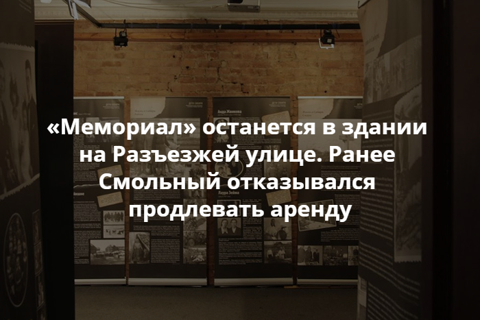 Ранее Смольный отказывался продлевать договор аренды с «Мемориалом». Чиновники заявляли, что приняли такое решение «с учетом информации правоохранительных органов», которую затем назвали гостайной.
