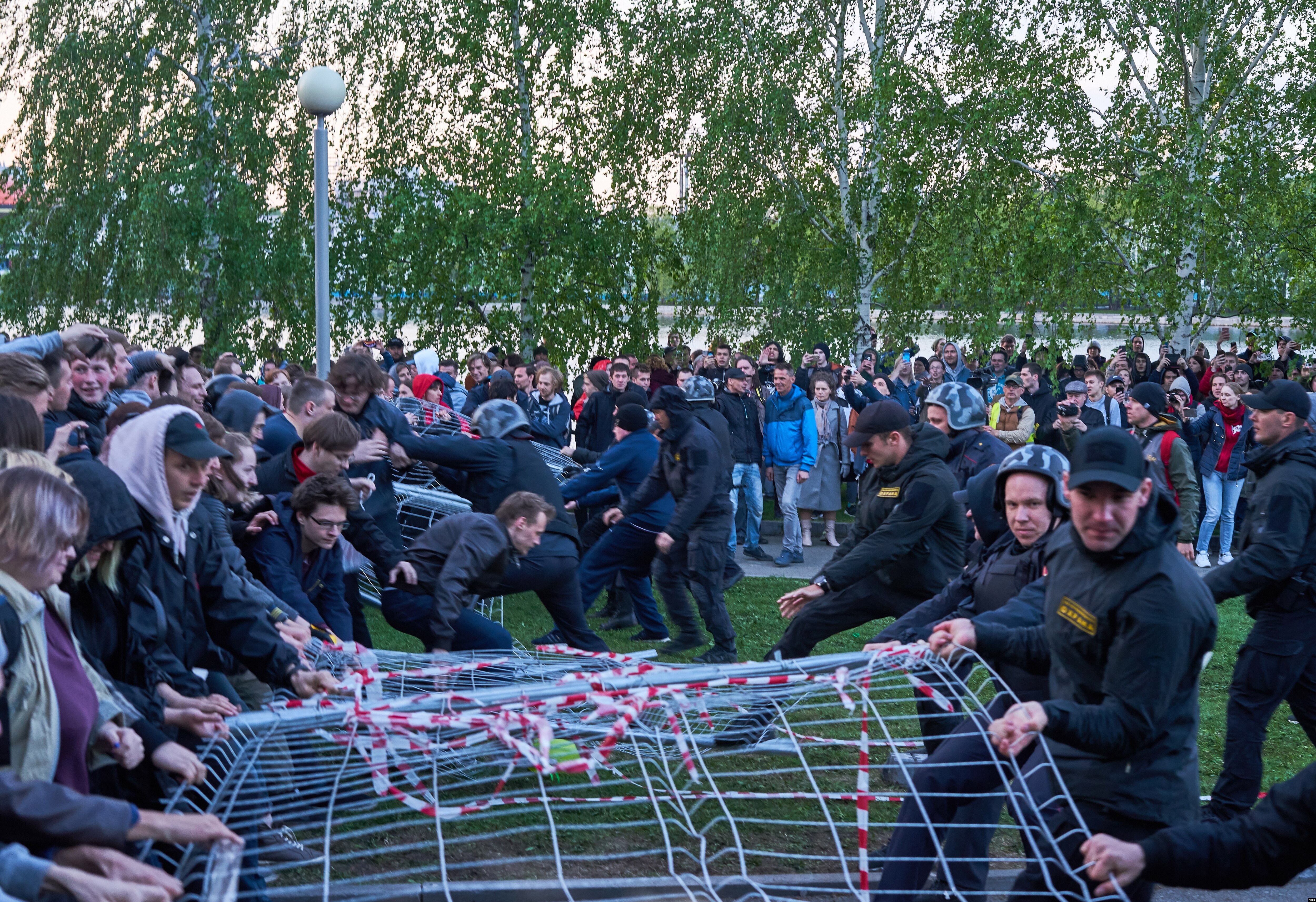 Ринат Низамов: Я журналист, наша задача освещать события, все-таки призывать власти к тому, чтобы они каким-то образом реагировали на то, что говорят люди. Я не помню такого события, чтобы собралось столько людей, тысяч пять точно есть в сквере. Что удивительно, власть до сих пор делает вид, что протеста нет. Никто к людям не выходит, ни губернатор, ни мэр, ни руководитель полиции. Я не согласен ни в коем случае, что здесь какие-то организованные силы. Конечно, я видел здесь флаги коммунистов, я видел, что навальновские товарищи собираются, видел фанатские группировки. Но это логично, когда третий день происходят эти протесты, к таким мероприятиям всякая нечисть прилипает. Но в целом большинство – это жители города, которые не согласны с тем, что происходит там, где они живут.