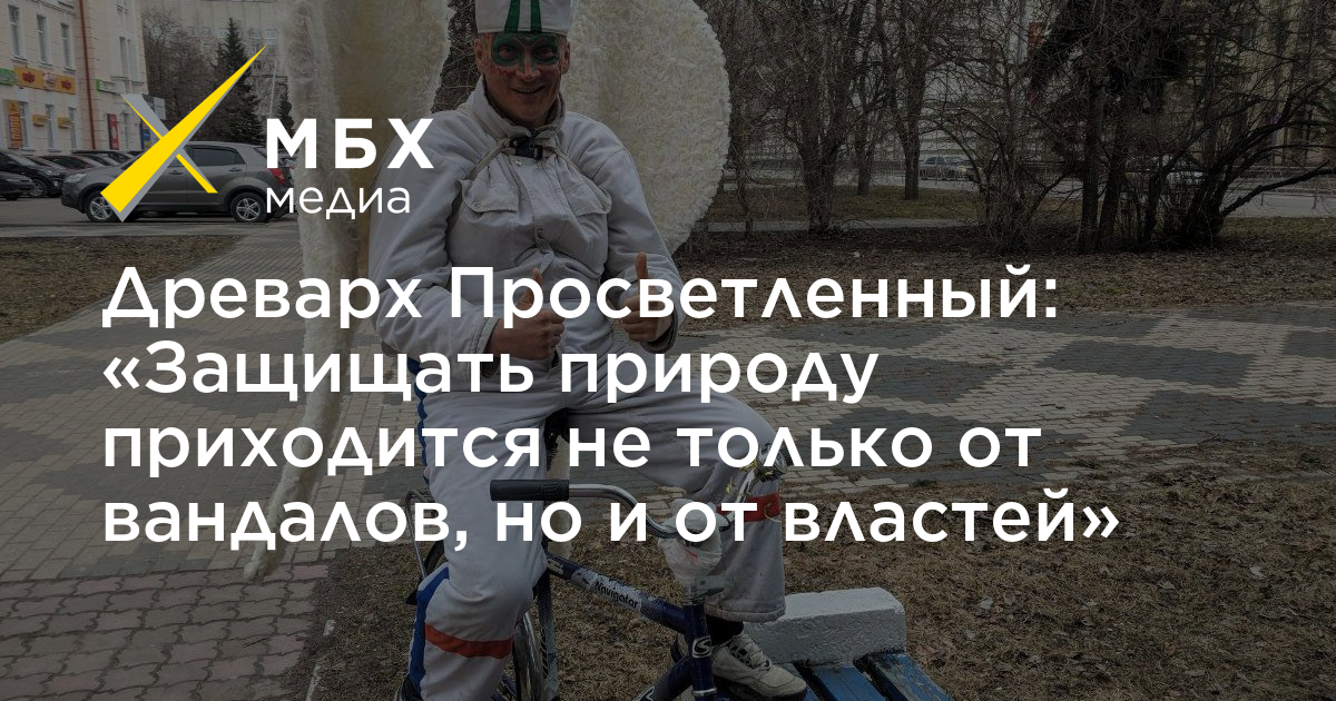 Если вам навстречу мчится человек-дерево на велосипеде, а за его спиной развеваются ангельские крылья, не пугайтесь — вы в Архангельске. Здесь повстречать Древарха — хорошая примета. Человек-мем не устает удивлять горожан. На протяжении 16 лет он регулярно меняет имя отчество, неизменным оставляя фамилию — Древарх Просветленный. Каждый месяц он менял паспорт, чем вызывал постоянное недовольство работников архангельского ЗАГСа. В прошлом предприниматель, Древарх оставил брокерскую контору ради общественного фонда «Посади свое дерево». Одни поговаривают, что под видом фрика он скрывается от долгов, другие — что Древарх искренне предпочел костюму-тройке крылья и шапку с мигалкой. В последнее время человек-дерево активно участвует в антимусорных протестах. Он ездит волонтером на станцию Шиес и постоянно участвует в бессрочном протесте в центре Архангельска. Мы поговорили с Древархом о его гражданской позиции.