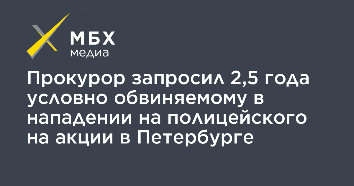 Прокурор запросил для активиста Михаила Цакунова, обвиняемого в нападении на полицейского на акции 5 мая в Санкт-Петербурге, 2,5 года условно. Об этом «МБХ медиа» рассказал адвокат «Правозащиты Открытки» Павел Ясман.