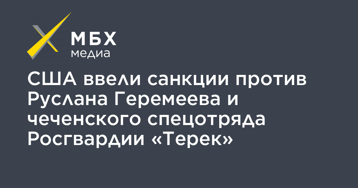 Минфин США ввел санкции против спецотряда быстрого реагирования Росгвардии «Терек», базирующегося в Чечне, и бывшего заместителя командира батальона «Север» Руслана Геремеева, сообщается на сайте ведомства.