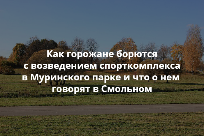 Защитники Муринского парка просили Смольный вернуть участок площадью 1,8 га в перечень зеленых насаждений общего пользования, чтобы сохранить его от застройки. Однако, по словам врио губернатора Петербурга Александра Беглова, это может «ухудшить инвестиционный климат» города.