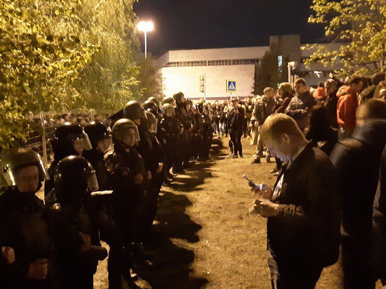 Около 00:30 мск ОМОН покинул сквер, но потом вернулся.