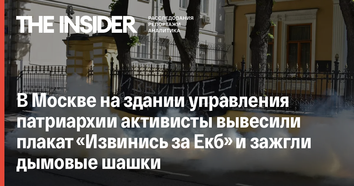 В Москве на здании управления патриархии активисты вывесили плакат «Извинись за Екб» и зажгли дымовые шашки