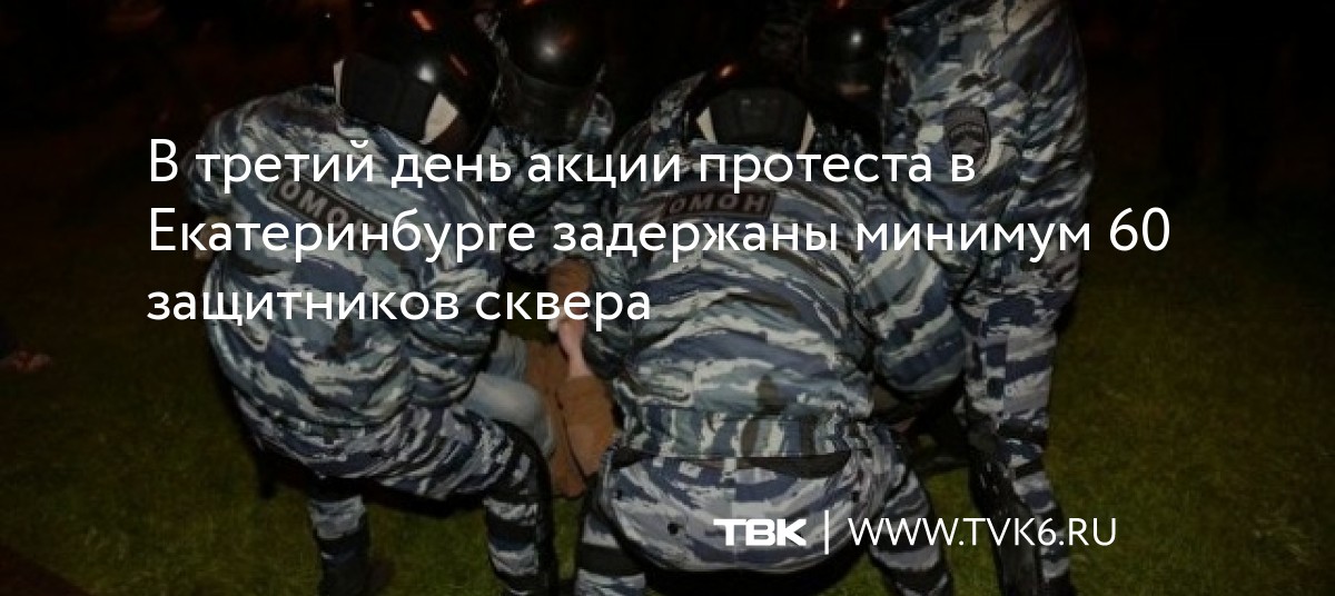 В третий день акции протеста в Екатеринбурге задержаны минимум 60 защитников сквера