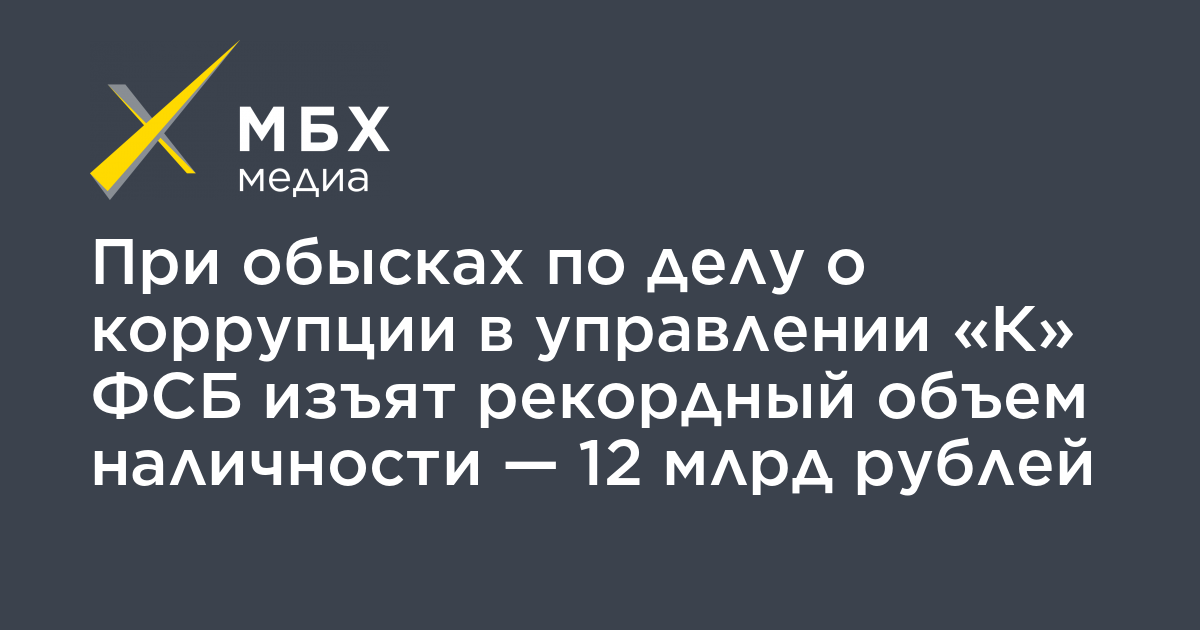 При обысках по делу о коррупции в управлении «К» ФСБ изъят рекордный объем наличности — 12 млрд в рублевом эквиваленте. Об этом сообщает «Росбалт» со ссылкой на источники в спецслужбах.