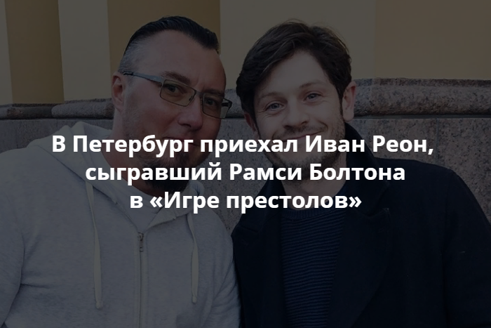 В Петербург 16 мая прилетел актер Иван Реон, сыгравший Рамси Болтона в сериале «Игра Престолов». Перед выступлением на фестивале Comic Con он сфотографировал Исаакиевский собор, пообщался с фанатами и посетил офис «ВКонтакте» в Доме Зингера. «Бумага» рассказывает, чем Иван Реон занимался в Петербурге.