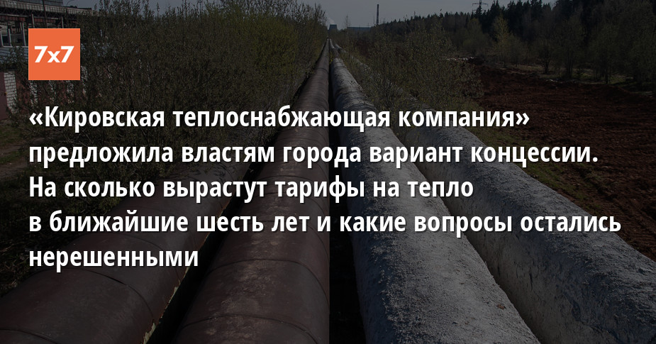Киров переходит на концессию ― это передача сетей в управление частным компаниям, которые должны вложиться в обновление и реконструкцию коммуникаций. Сделать это самостоятельно город не может ― речь идет о миллиардах рублей. Расплатятся за модернизацию жители Кирова, потому что расходы частной компании-инвестора будут заложены в тариф на тепло. «Кировская тепловая компания» (дочка ПАО «Т Плюс») предложила администрации Кирова свой вариант условий концессионного соглашения, 13 мая мэрия опубликовала постановление, в котором говорится, что такое соглашение заключить возможно. Если больше заявку никто не подаст, власти подпишут соглашение с этой компанией. «7x7» проанализировал предложение КТК и рассказывает, какие условия предлагает компания, на сколько может вырасти тариф и какие проблемы в этом видят общественники.