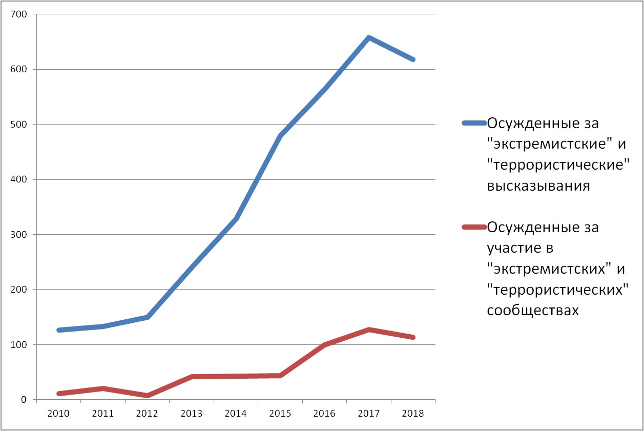 Сколько осуждают по антиэкстремистским статьям?