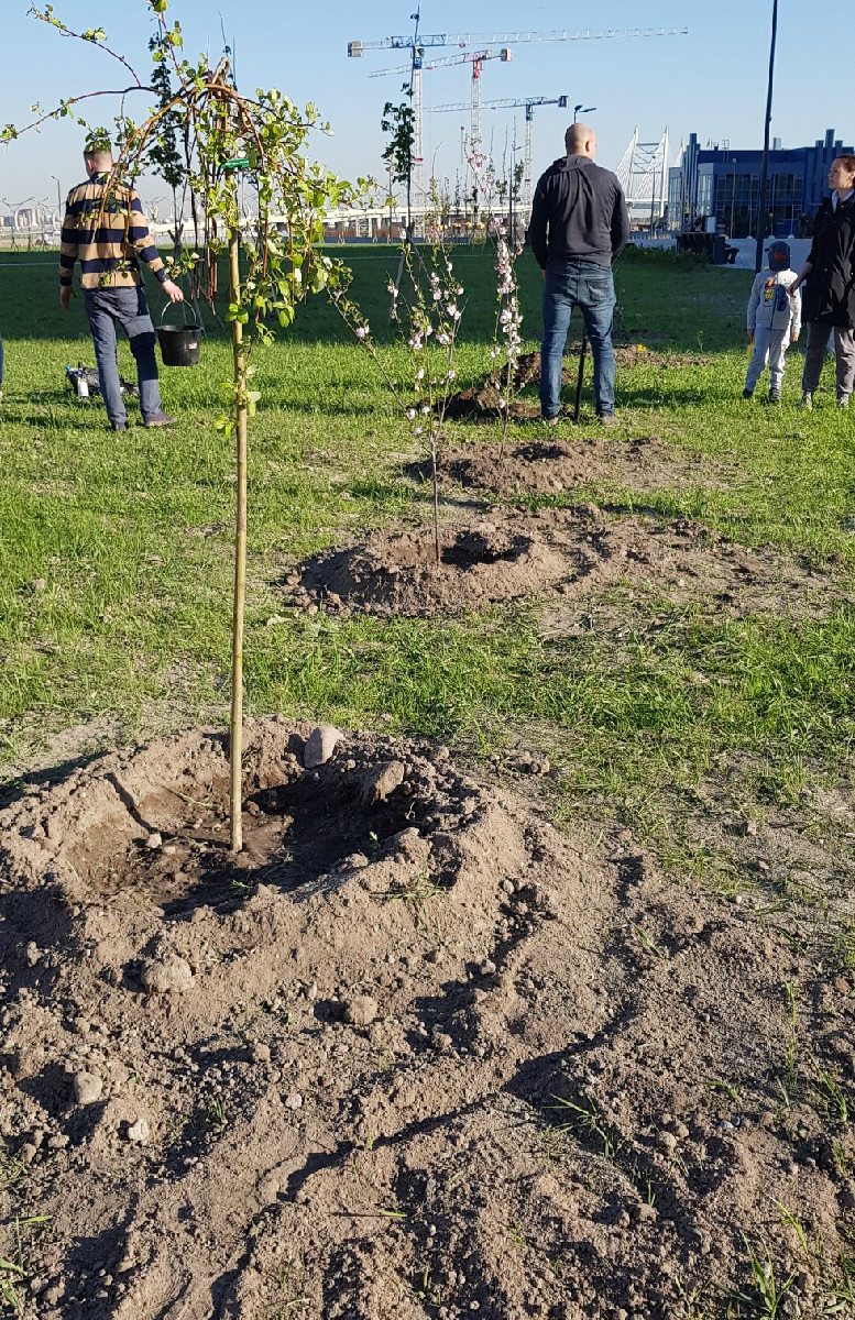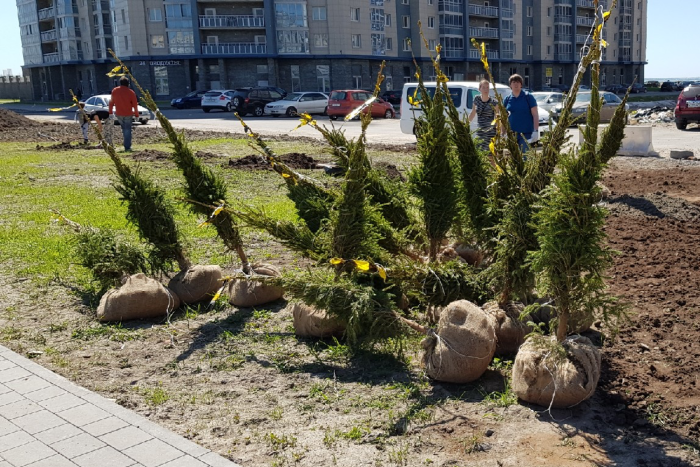 Петербуржцы посадили более ста деревьев на площади Европы, которая находится на намыве Васильевского острова.