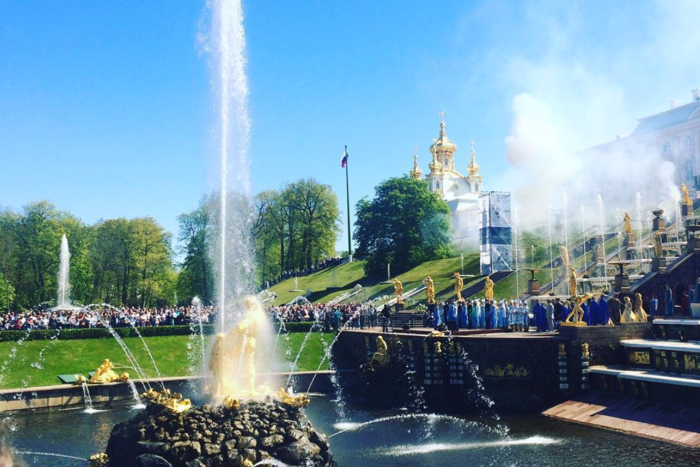 «Бумага» собрала фотографии и видео церемонии открытия фонтанов в Петергофе.