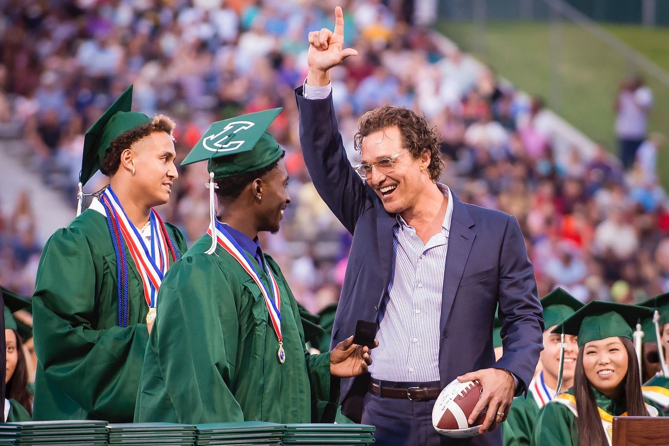 Это произошло в старшей школе города Лонгвью, штат Техас, куда актер пришел на церемонию вручения дипломов, чтобы выступить перед выпускниками 2019 года. Сам Макконахи закончил эту школу в 1988 году.