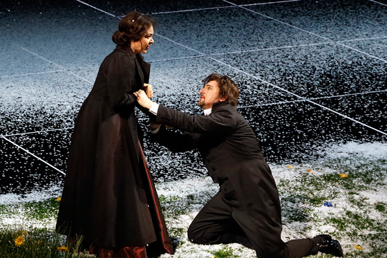 Все это не отменяет красивого, неспешного, охорашивающегося оркестра под управлением Тугана Сохиева, прозрачных ансамблей, хорошей дикции, роскошного Игоря Головатенко (Онегин), драгоценного Алексея Неклюдова (Ленский), страстной Анны Нечаевой (Татьяна) и общего высокого певческого уровня. Но, хотя тут как раз есть и фабула, и причинно-следственные связи, кажется, что спектакль может остановиться в любой момент и ничего от этого не изменится — потому что он с самого начала никуда не ехал.