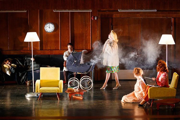 Олден и его команда (сценографы Эндрю Либерман и Ираклий Авалиани, художница по костюмам Доуи Люти) предлагают маски, с которыми мы можем соглашаться или не соглашаться, но они в любом случае очень неформальные, они задают вопросы, волнуют, ранят, усмехаются, живут.