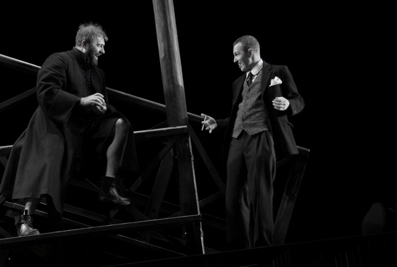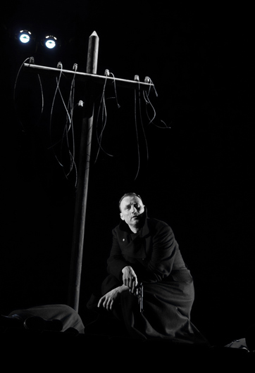 © Екатерина Цветкова Этот образ множества тихо поднимающихся и вновь тихо, привычно ложащихся лицом в землю людей намного сильнее воздействует на воображение, чем все остальное в спектакле. Изумляет то, что эта экспрессионистская оптика является, по сути, лирическим высказыванием режиссера, признанного одним из оплотов современного психологического театра. Вместо разнообразия голосов и лиц многофигурной пьесы — едва ли не монодрама, реальность, увиденная глазами больного, одержимого и страдающего манией преследования генерала-убийцы.