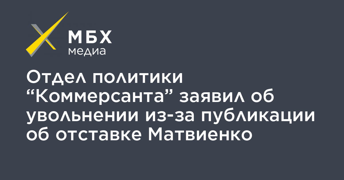 Отдел политики ИД “Коммерсант” в полном составе заявил об увольнении из-за публикации о возможной отставке спикера Совфеда Валентины Матвиенко. О том, что заявления поданы, сообщил у себя в Facebook заместитель главного редактора Глеб Черкасов.