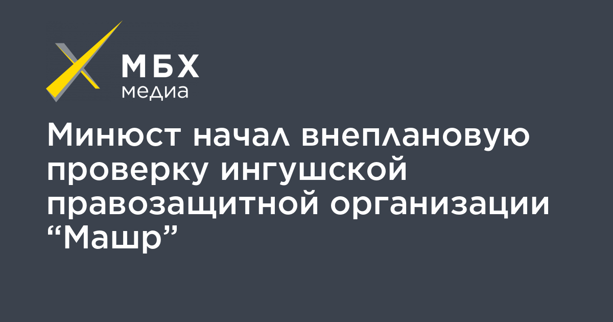 Управление Минюста по Ингушетии начало внеплановую проверку ингушской правозащитной организации «Машр», лидеры которой были участниками протестов против соглашения о границе с Чечней. Об этом сообщил «МБХ медиа» представитель «Машр», глава регионального отделения партии «Яблоко» Руслан Муцольгов.