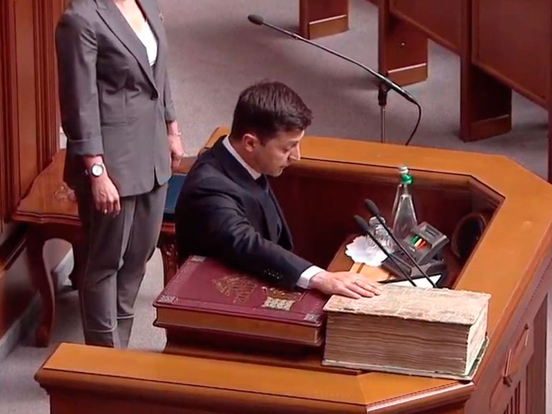 Вступление в должность Владимира Зеленского / YouTube.com Напомним, 16 мая украинские депутаты подавляющим большинством голосов приняли закон, закрепляющий использование государственного языка практически во всех сферах жизни, за исключением личного общения и религии. Для Петра Порошенко это событие стало выполнением одного из пунктов предвыборной концепции «Армия. Язык. Вера». Владимир Зеленский, позиционирующий себя в качестве двуязычного политика, уже успел раскритиковать документ. 18 мая, стало известно, что Россия обратилась в Совет безопасности ООН (членом которого является сама) с предложением срочного созыва СБ ООН для обсуждения вопроса о дискриминации в отношении русских, вызванной принятием закона.