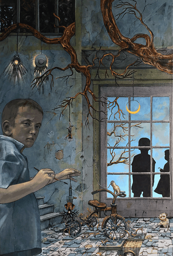 Именно Смит отыскал художника, который написал картину много лет назад и даже не подозревал, скольких людей она напугала. Автором картины оказался художник-сюрреалист Билл Стоунем, много лет проработавший в кино и гейм-дизайне. Он и помог частично восстановить историю полотна. Выяснилось, что картина была написана в 1972 году и отчасти воспроизводила детскую фотографию художника с соседской девочкой, которая на полотне превратилась в куклу. По сети гуляет фотография, которую якобы использовал Стоунем, хотя в разговоре с журналисткой The Telegraph он сказал, что снимок, о котором идёт речь, он давно потерял. Названием картины The Hands Resist Him послужил заголовок стихотворения, написанного первой женой художника за год до появления картины.