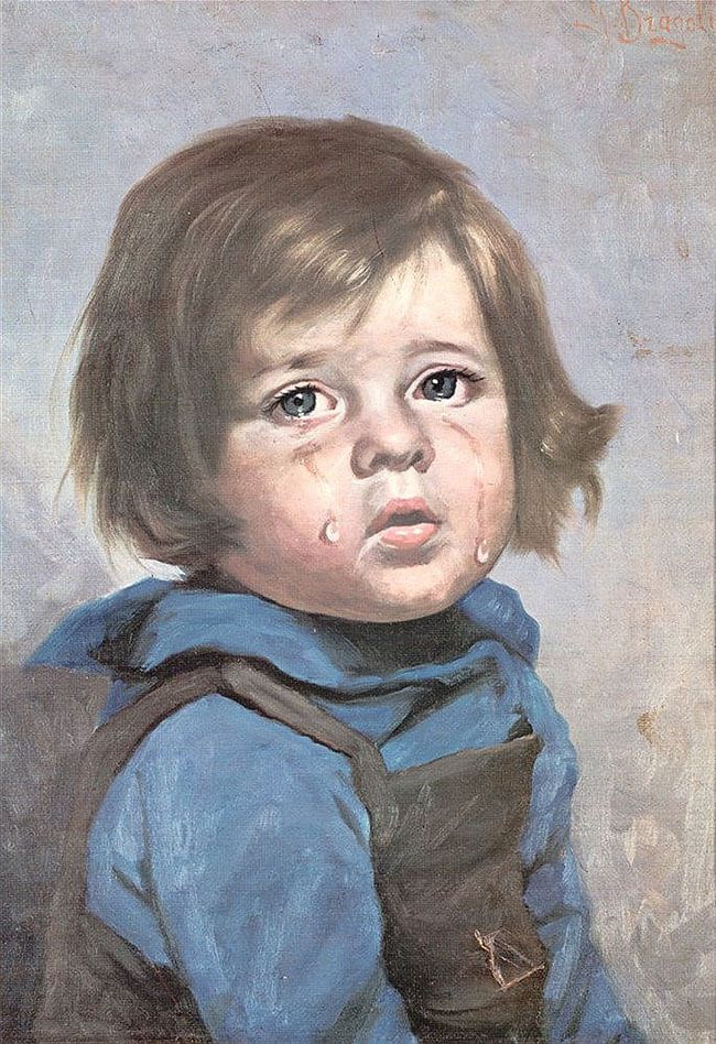 Ещё более примечательна в этом отношении история о картине «Плачущий мальчик». Её репродукции в 1960-х и 1970-х годах можно было найти в любом британском универмаге. В сентябре 1985 года таблоид The Sun написал, что «Плачущий мальчик» вызывает пожары. Опубликованная заметка рассказывала о пожаре в городе Ротерем, который уничтожил дом супругов Рона и Мей Холлов. Единственной вещью, уцелевшей при пожаре, была репродукция «Плачущего мальчика», которая осталась висеть на стене. Догадку о том, что причиной пожара стала именно картина, должны были подтвердить слова ротеремского пожарного, который утверждал, что уже не раз видел абсолютно невредимого «Плачущего мальчика» на пожарищах. Этого оказалось достаточно для заявления The Sun, что эту картину «пожарные считают проклятой». В заключение газета сообщала, что в Великобритании было продано свыше 50 000 копий картины.