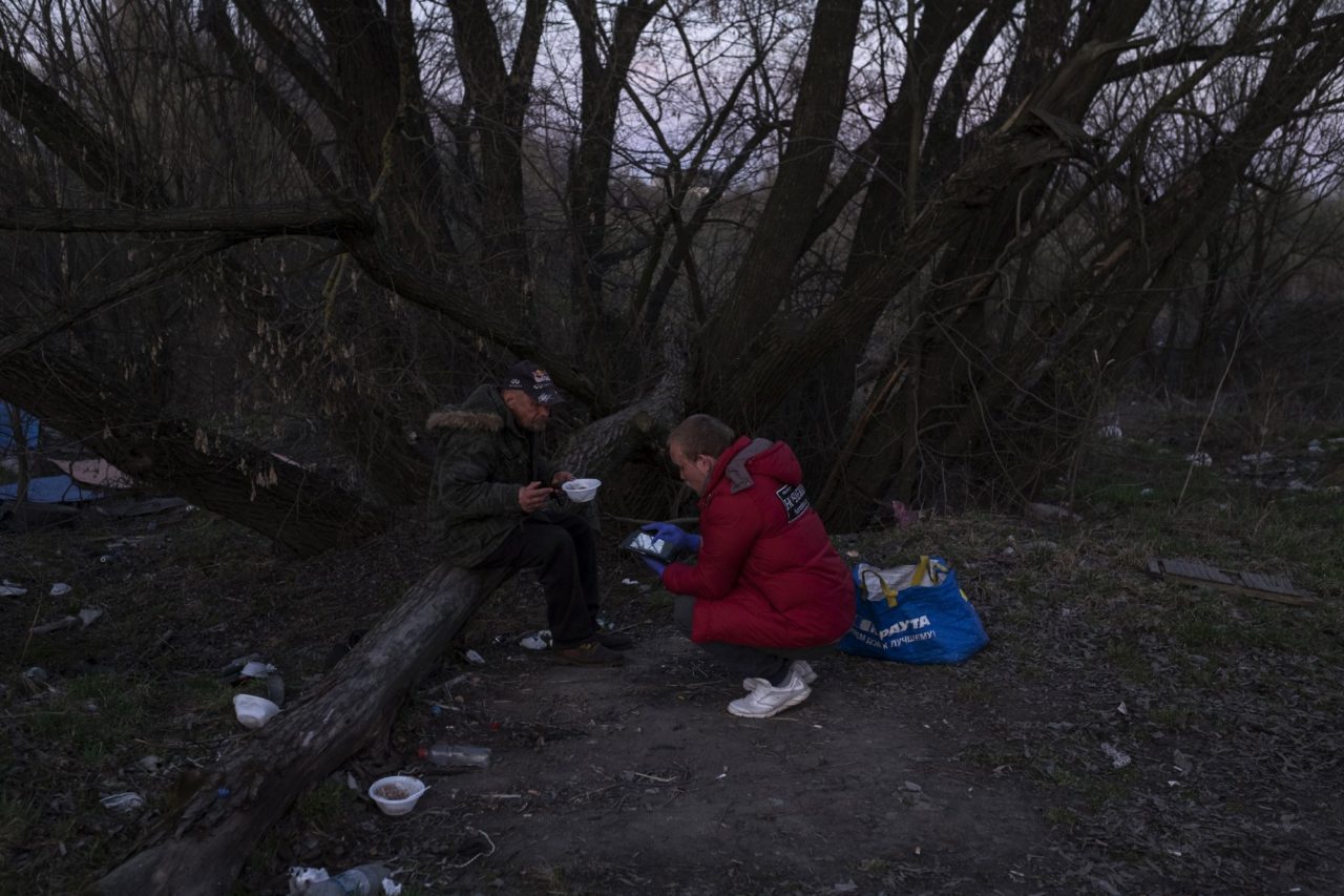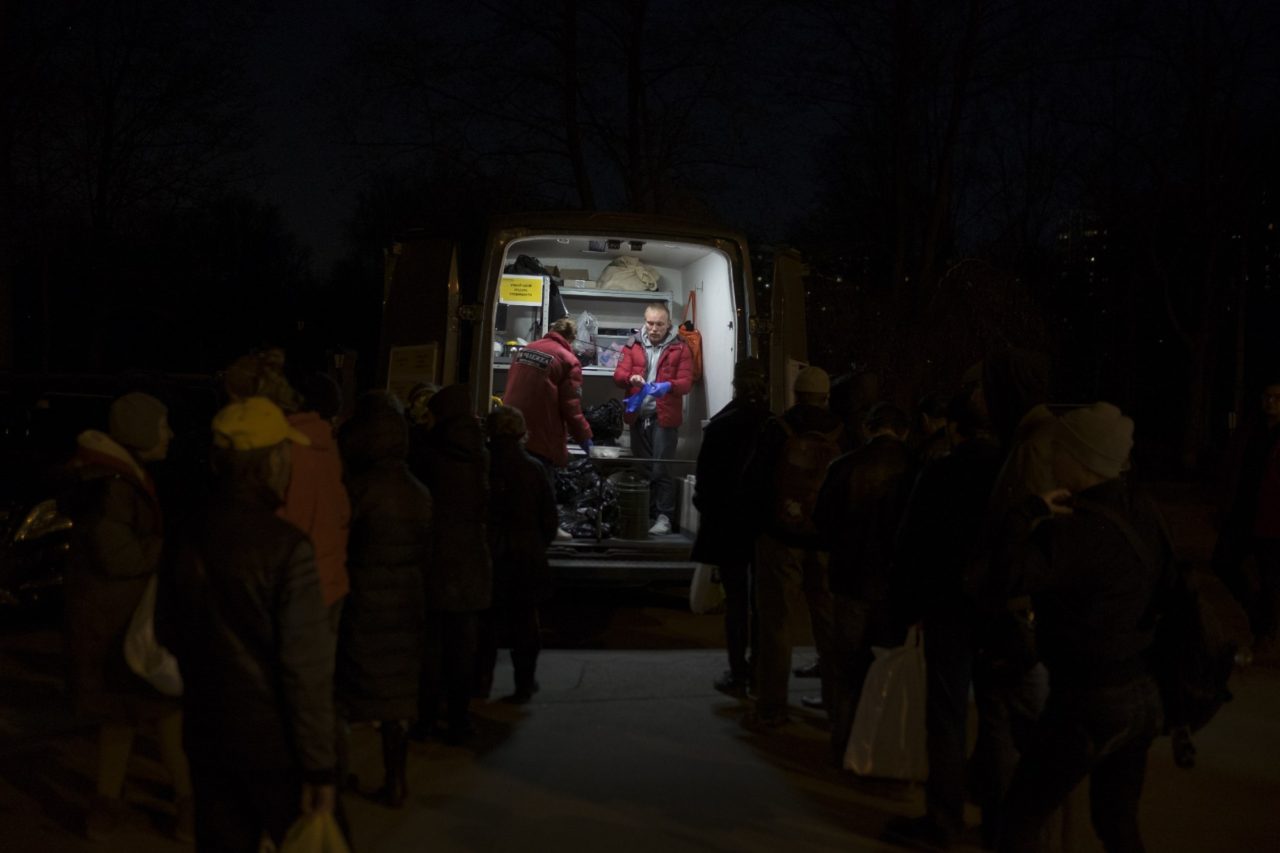 Дима готовится к раздаче еды бездомным во время поездки с «Ночным автобусом»Фото: Сергей Строителев для ТД «Там меня начало напрягать, что вокруг все — бывшие заключенные. А потом я увидел, как человек умер от передоза. Меня это очень сильно впечатлило. И я ушел. Снова начал скитаться — улица, притоны. Опять стал колоться, воровал в магазинах еду и выпивку. Скололся до того, что любой меня мог подойти и ударить. Меня заставляли работать за дозу, и я делал, что мне говорили. Это продолжалось около года. Однажды зимой меня не пустили в притон, пришлось ночевать в подъезде, началась адская ломка. Утром меня нашел человек из церкви пятидесятников и предложил помощь. Я хотел поехать в больницу, но поехал к ним. Это оказалось странное место, трудовая община. Курить нельзя, звонить нельзя, только молитвы и Библия. И труд. Девять месяцев работаешь за жилье и еду, молишься, встаешь на путь исправления, и после этого тебе дают телефон и зарплату. Меня хватило на шесть дней».