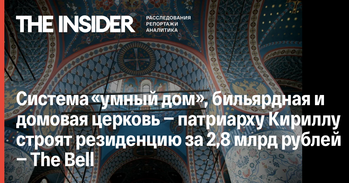Система «умный дом», бильярдная и домовая церковь — патриарху Кириллу строят резиденцию за 2,8 млрд рублей — The Bell