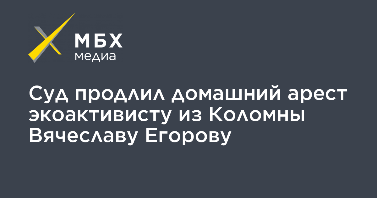 Коломенский городской суд продлил до 30 июля срок домашнего ареста экоактивисту Вячеславу Егорову, которого обвиняют в неоднократном нарушении порядка проведения митингов (ст. 212.1 УК). Об этом «МБХ медиа» сообщила адвокат Мария Эйсмонт.