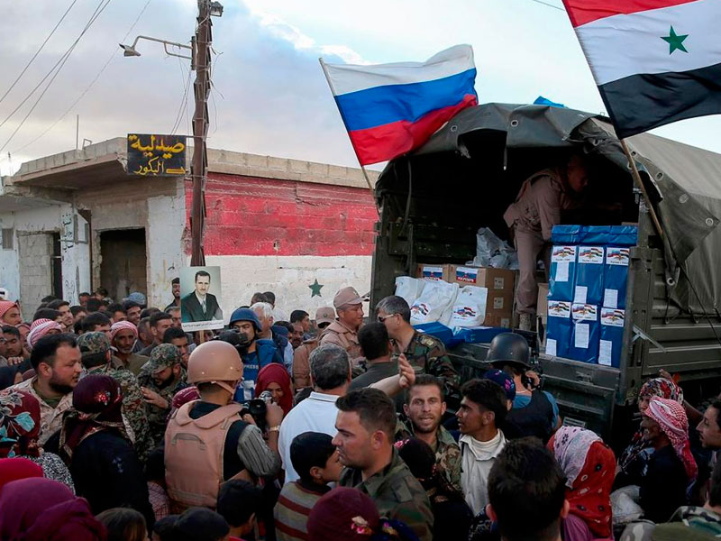 Раздача продуктов в Сирии / mil.ru Россия проводит военную операцию в Сирии с осени 2015 года. Российская авиация поддерживает наземные операции сирийской армии. В сентябре 2018 года в Сочи РФ и Турция договорились создать в Идлибе демилитаризованную зону шириной в 15 км. Ранее сегодня стало известно, что США дали Турции две недели на отказ от российских С-400 и покупку американской системы Patriot.