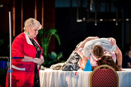 — Положения Ирины и Маши схожи, обе они находятся в ситуации любовного треугольника. В Ирину влюблены Тузенбах и Соленый, причем в моем прочтении Соленый имеет большее влияние на Ирину, чем барон, он опасен и то же время привлекателен. Олден нашел фантастический ход: признание в любви Соленый поет, обращаясь к Тузенбаху. Но Ирина рядом, она все слышит. Я нахожу это решение гениальным, гораздо более сильным, чем обычное признание; оно как бы готовит Тузенбаха к смерти.