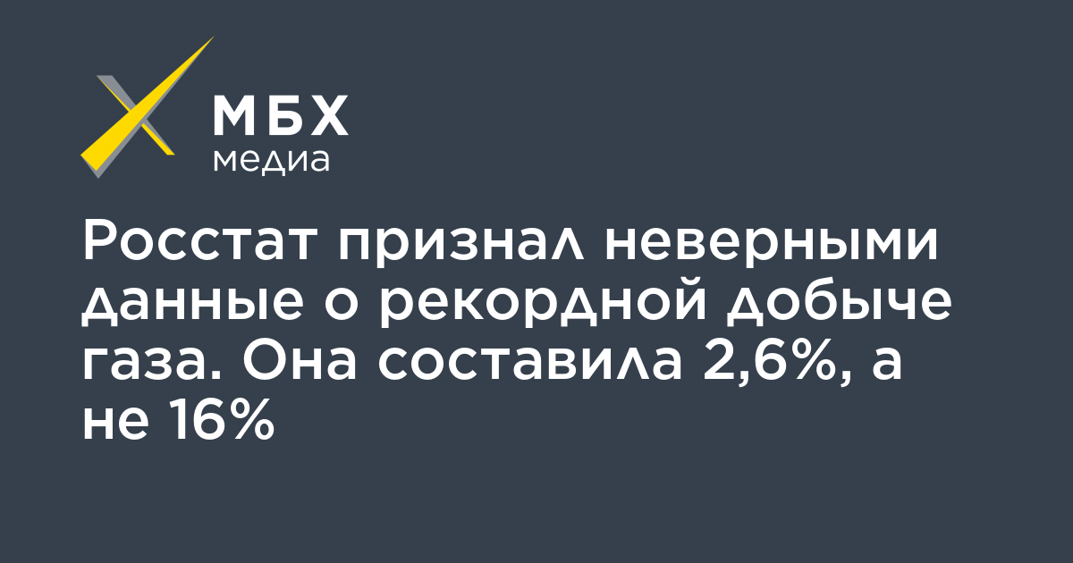 Росстат признал неверными данные о рекордной добыче газа. Она составила 2,6%, а не 16%