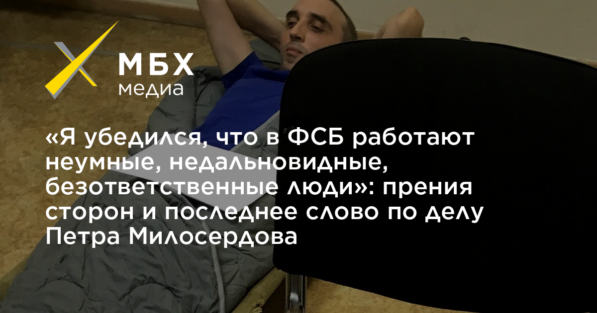 «Я убедился, что в ФСБ работают неумные, недальновидные, безответственные люди»: прения сторон и последнее слово по делу Петра Милосердова
