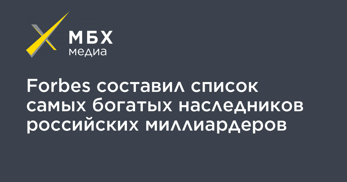Российский журнал Forbes составил список самых богатых наследников российских миллиардеров, говорится на сайте журнала.