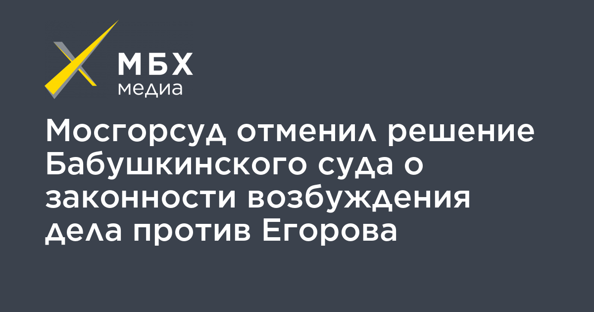 Мосгорсуд отменил решение Бабушкинского суда о законности возбуждения дела против Егорова