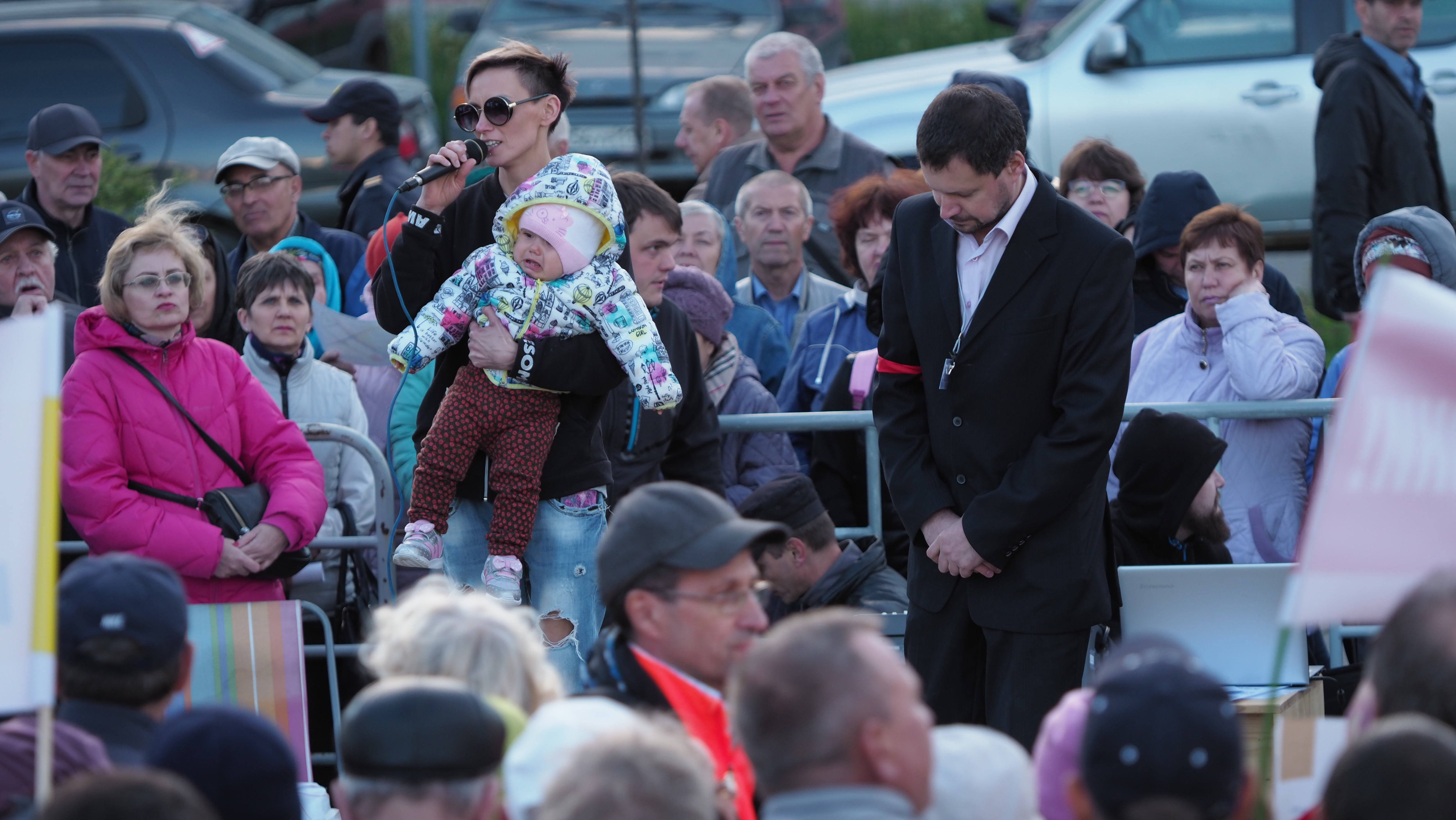 — Живу в Дербышках с рождения, мои родители выросли здесь, — рассказывает девушка, взошедшая на палеты вместе с ребёнком (расплакавшегося малыша пришлось вскоре передать на время выступления организатору). — В мои планы не входит переезжать в какой-то там "Салават купере" и вешать на себя ипотеку. Тем более я воспитываю ребенка одна. Что касается дороги... Это тупо отмывание денег очередное.