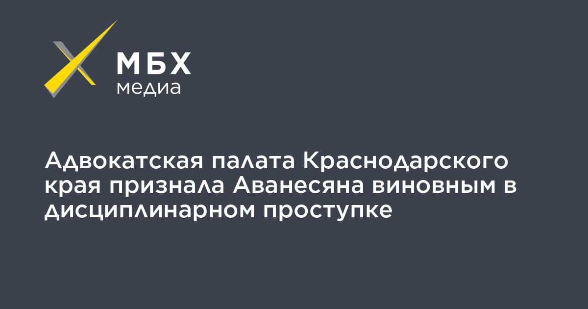 Адвокатская палата Краснодарского края признала Аванесяна виновным в дисциплинарном проступке